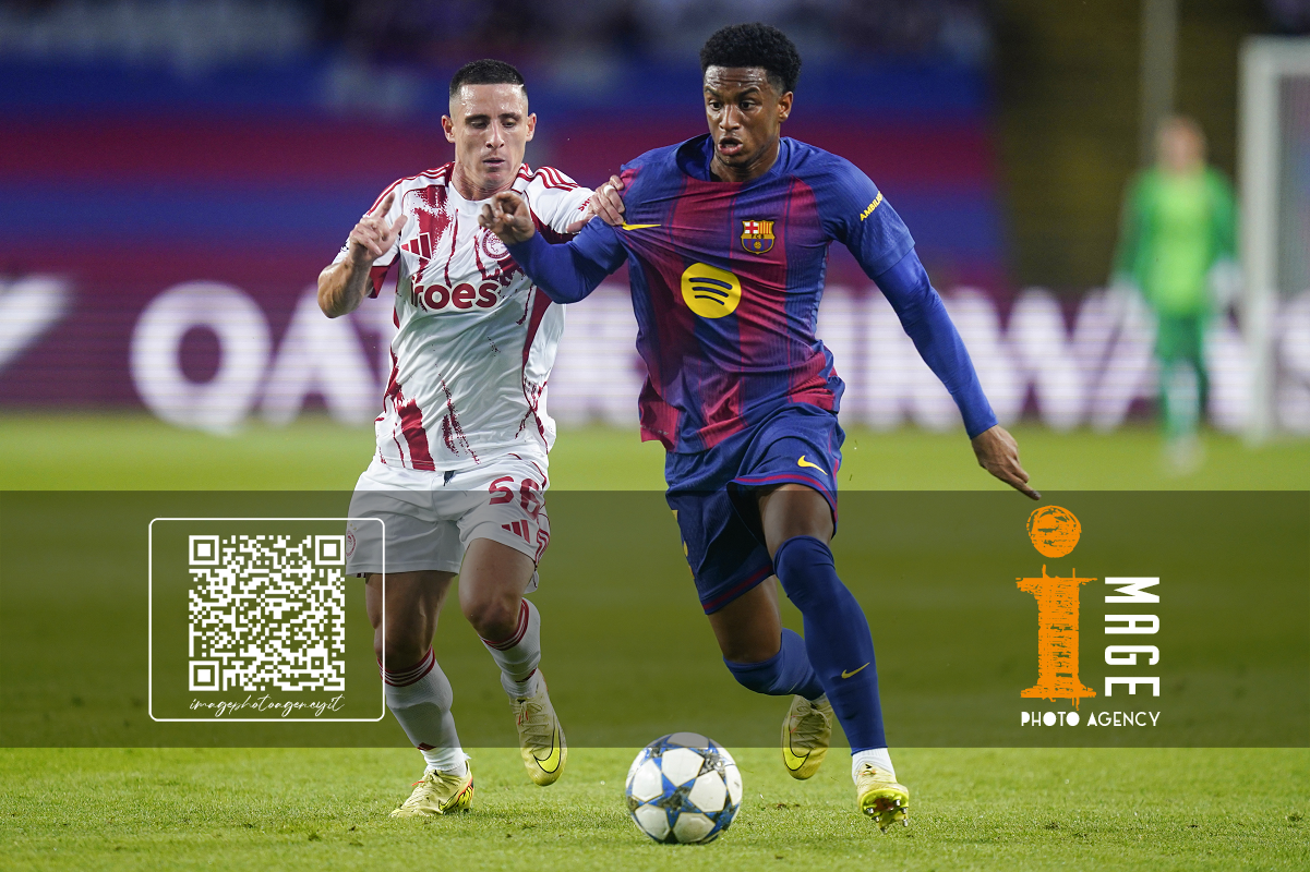 Pre Barcellona 21/10/2025 - Champions League / Barcellona-Olympiacos / foto Pressinphoto/Image Sport nella foto: Alejandro Balde-Daniel Podence