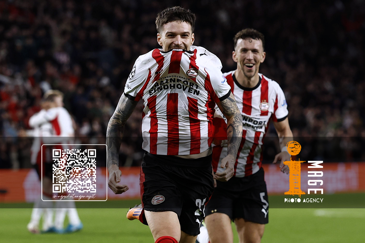 Eindhoven (Olanda) 21/10/2025 - Champions League / PSV Eindhoven-Napoli / foto Imago/Image Sport nella foto: esultanza gol Dennis Man ONLY ITALY