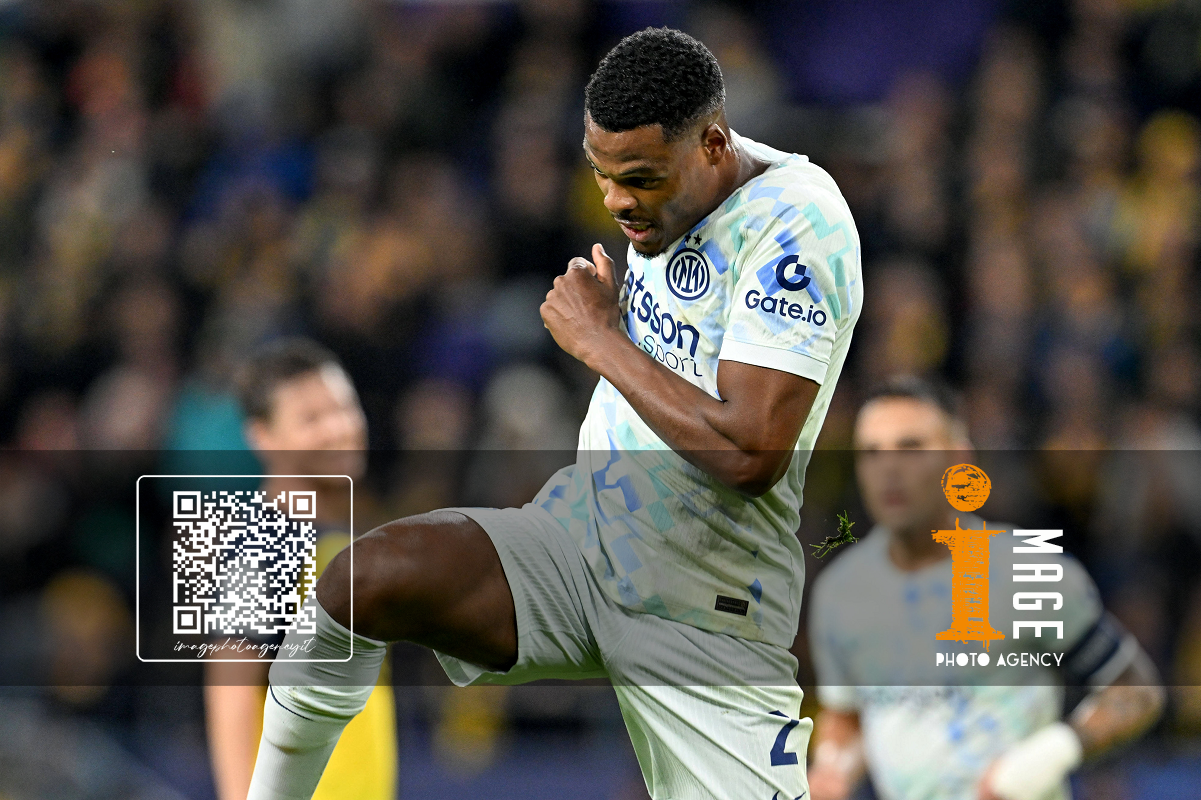 Bruxelles (Belgio) 21/10/2025 - Champions League / Saint Gilloise-Inter / foto Imago/Image Sport nella foto: esultanza gol Denzel Dumfries ONLY ITALY