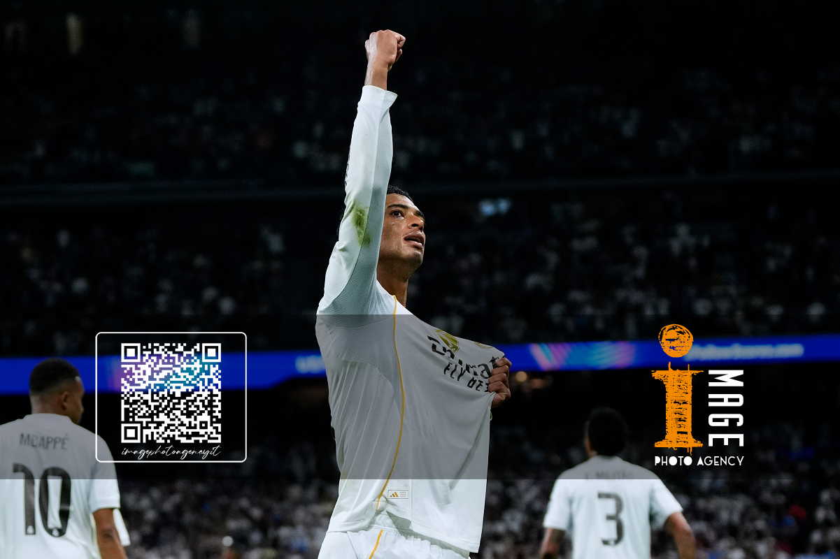 Pre Madrid 22/10/2025 - Champions League / Real Madrid-Juventus / foto Pressinphoto/Image Sport nella foto: esultanza gol Jude Bellingham