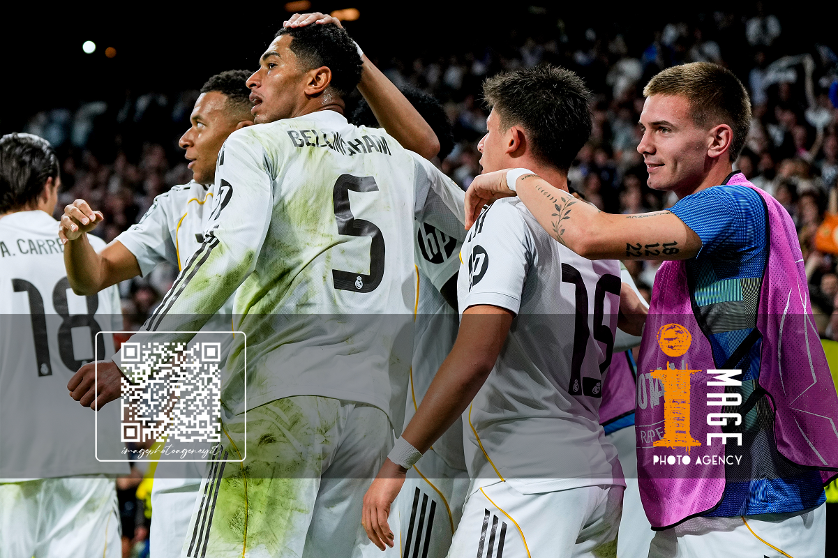 Pre Madrid 22/10/2025 - Champions League / Real Madrid-Juventus / foto Pressinphoto/Image Sport nella foto: esultanza gol Jude Bellingham