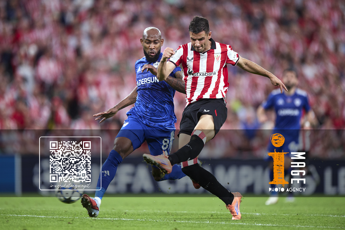 Pre Bilbao 22/10/2025 - Champions League / Athletic Club-Qarabag / foto Pressinphoto/Image Sport nella foto: Gorka Guruzeta-Kevin Medina