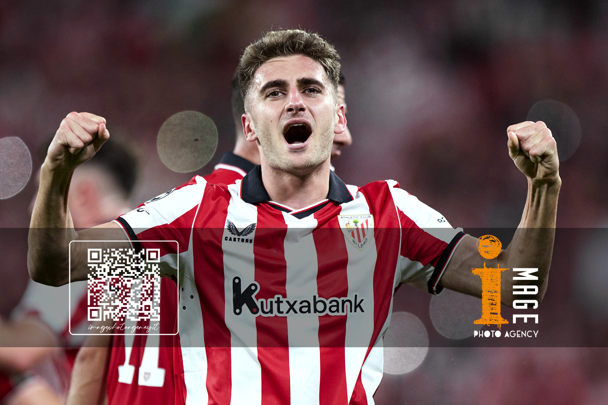 Pre Bilbao 22/10/2025 - Champions League / Athletic Club-Qarabag / foto Pressinphoto/Image Sport nella foto: esultanza gol Robert Navarro