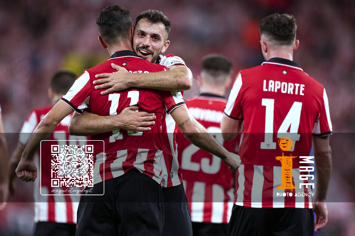 Pre Bilbao 22/10/2025 - Champions League / Athletic Club-Qarabag / foto Pressinphoto/Image Sport nella foto: esultanza gol Gorka Guruzeta