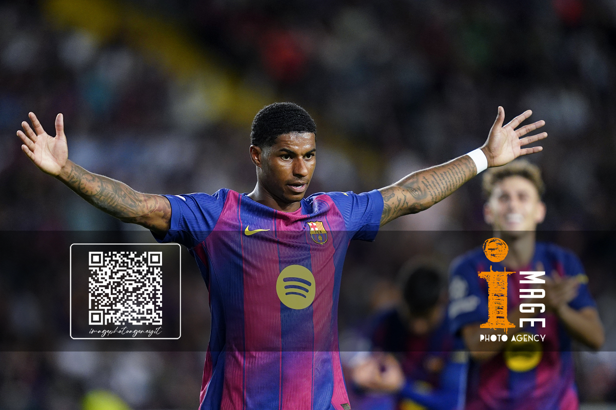 Pre Barcellona 21/10/2025 - Champions League / Barcellona-Olympiacos / foto Pressinphoto/Image Sport nella foto: esultanza gol Marcus Rashford