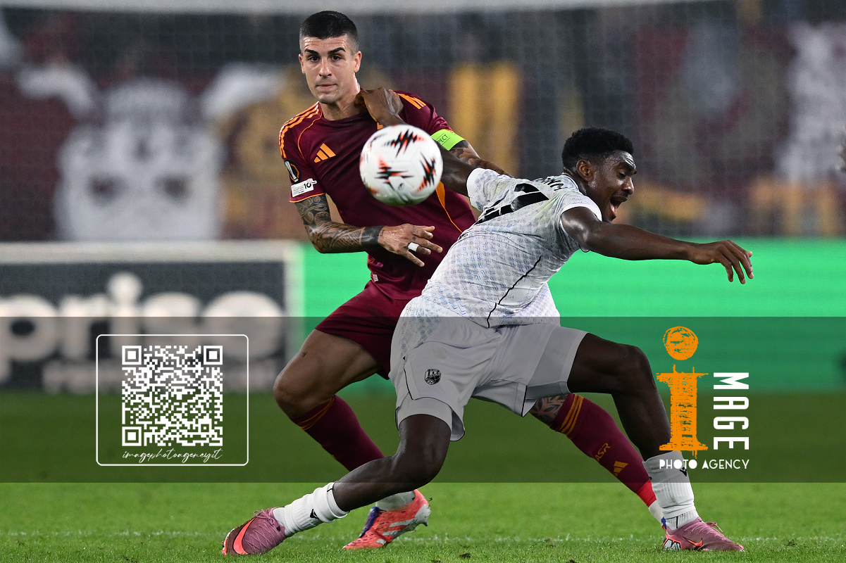 As Roma 23/10/2025 - Europa League / Roma-Viktoria Plzen / foto Antonello Sammarco/Image Sport nella foto: Gianluca Mancini-Rafiu Durosinmi