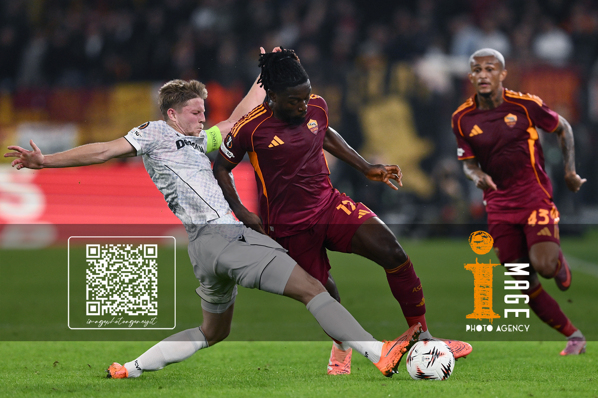 As Roma 23/10/2025 - Europa League / Roma-Viktoria Plzen / foto Antonello Sammarco/Image Sport nella foto: Lukas Cerv-Manu Kone'
