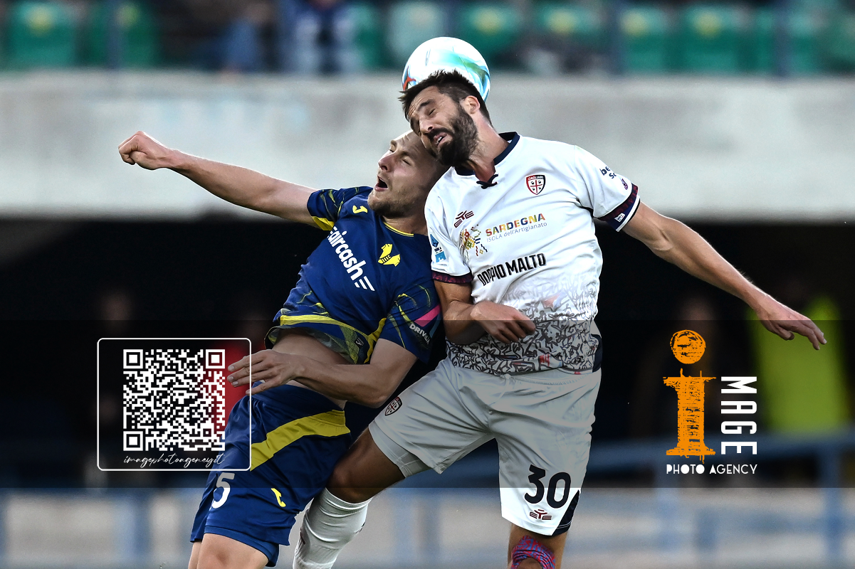 Db Verona 26/10/2025 - campionato di calcio serie A / Hellas Verona-Cagliari / foto Daniele Buffa/Image Sport nella foto: Leonardo Pavoletti-Victor Nelsson