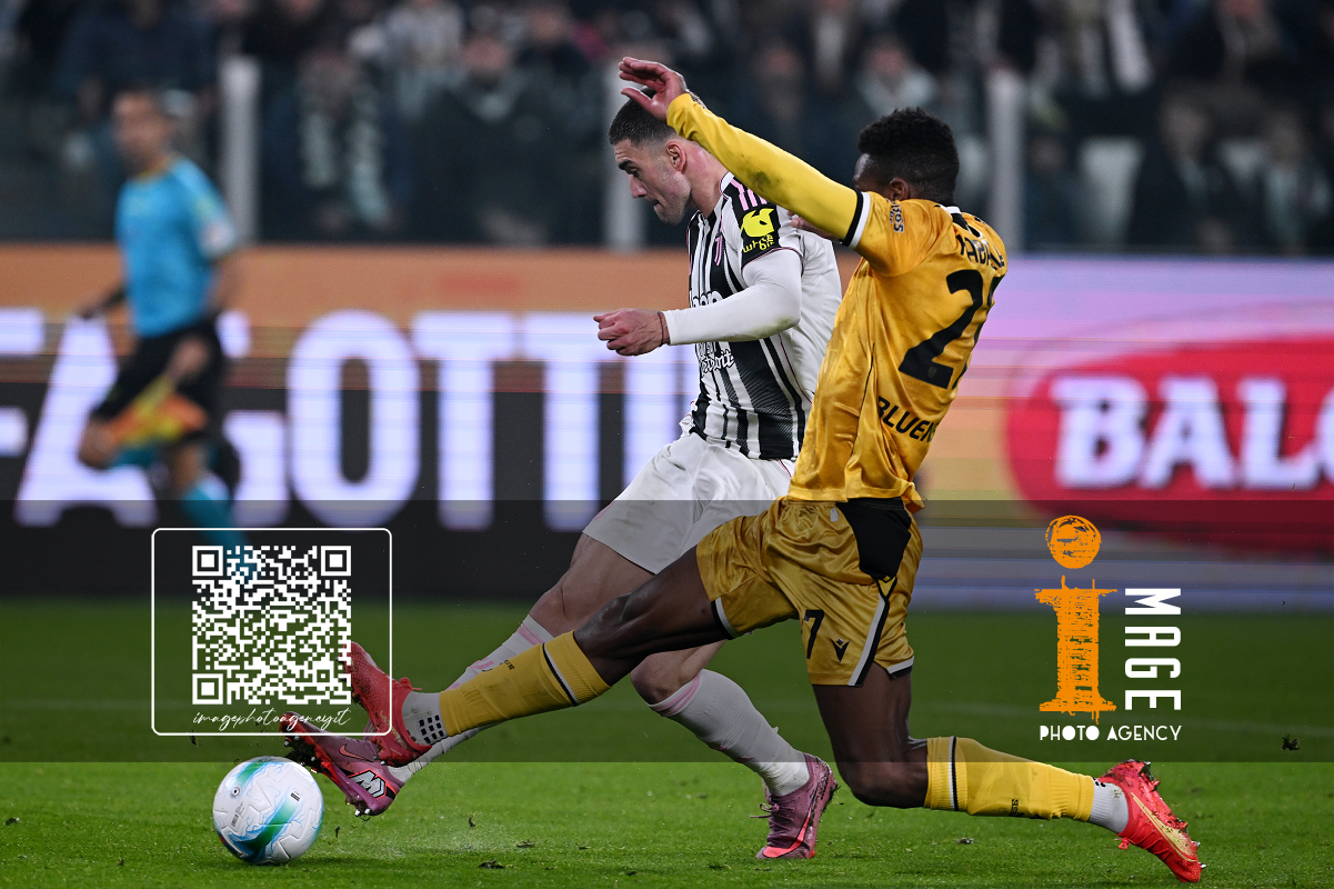 Cm Torino 29/10/2025 - campionato di calcio serie A / Juventus-Udinese / foto Cristiano Mazzi/Image Sport nella foto: Dusan Vlahovic-Christian Kabasele