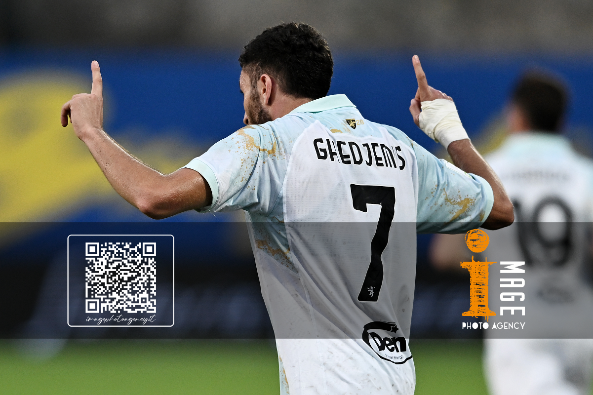 Mp Carrara 01/11/2025 - campionato di calcio Serie B / Carrarese-Frosinone / foto Matteo Papini/Image Sport nella foto: esultanza gol Fares Ghedjemis
