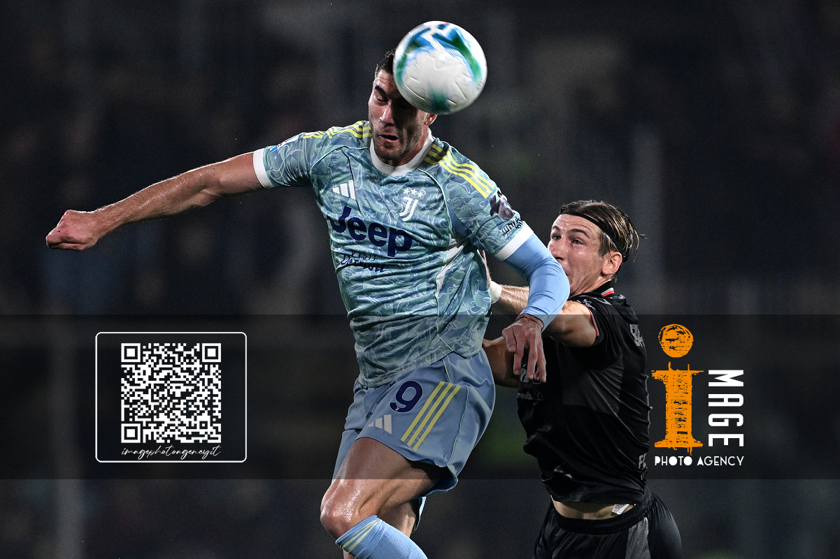 Mg Cremona 01/11/2025 - campionato di calcio serie A / Cremonese-Juventus / foto Matteo Gribaudi/Image Sport nella foto: Dusan Vlahovic-Federico Baschirotto