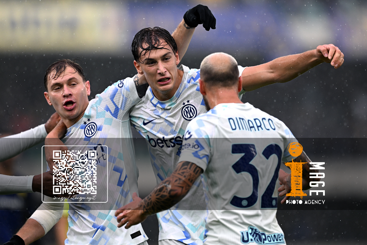 Mg Verona 02/11/2025 - campionato di calcio serie A / Hellas Verona-Inter / foto Matteo Gribaudi/Image Sport nella foto: Pio Esposito-Federico Dimarco-Nicolo' Barella