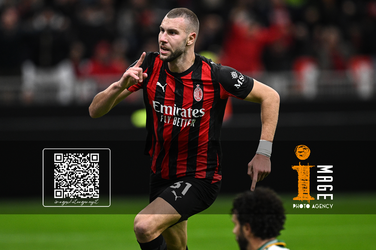 Mg Milano 02/11/2025 - campionato di calcio serie A / Milan-Roma / foto Matteo Gribaudi/Image Sport nella foto: esultanza gol Strahinja Pavlovic
