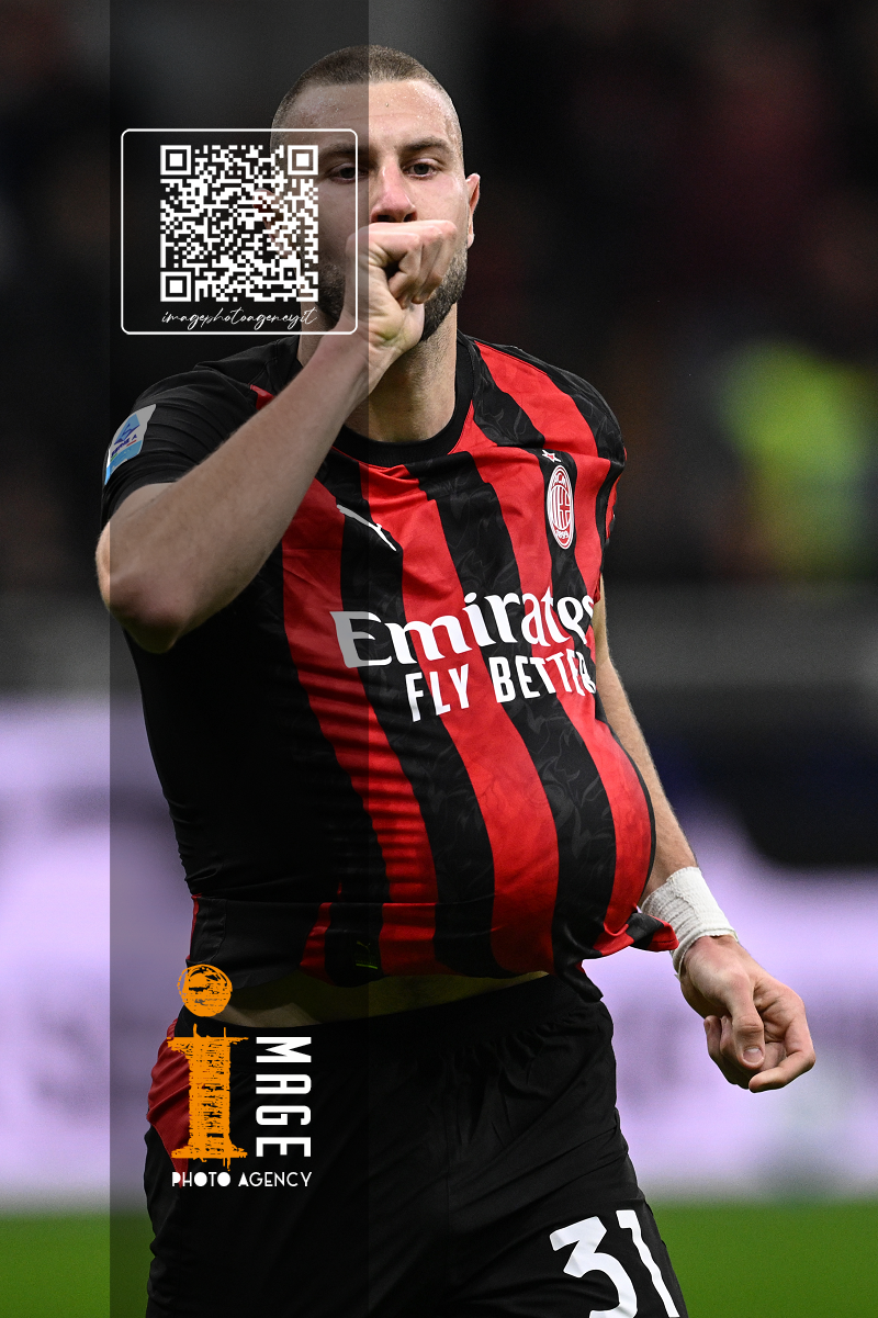 Mg Milano 02/11/2025 - campionato di calcio serie A / Milan-Roma / foto Matteo Gribaudi/Image Sport nella foto: esultanza gol Strahinja Pavlovic