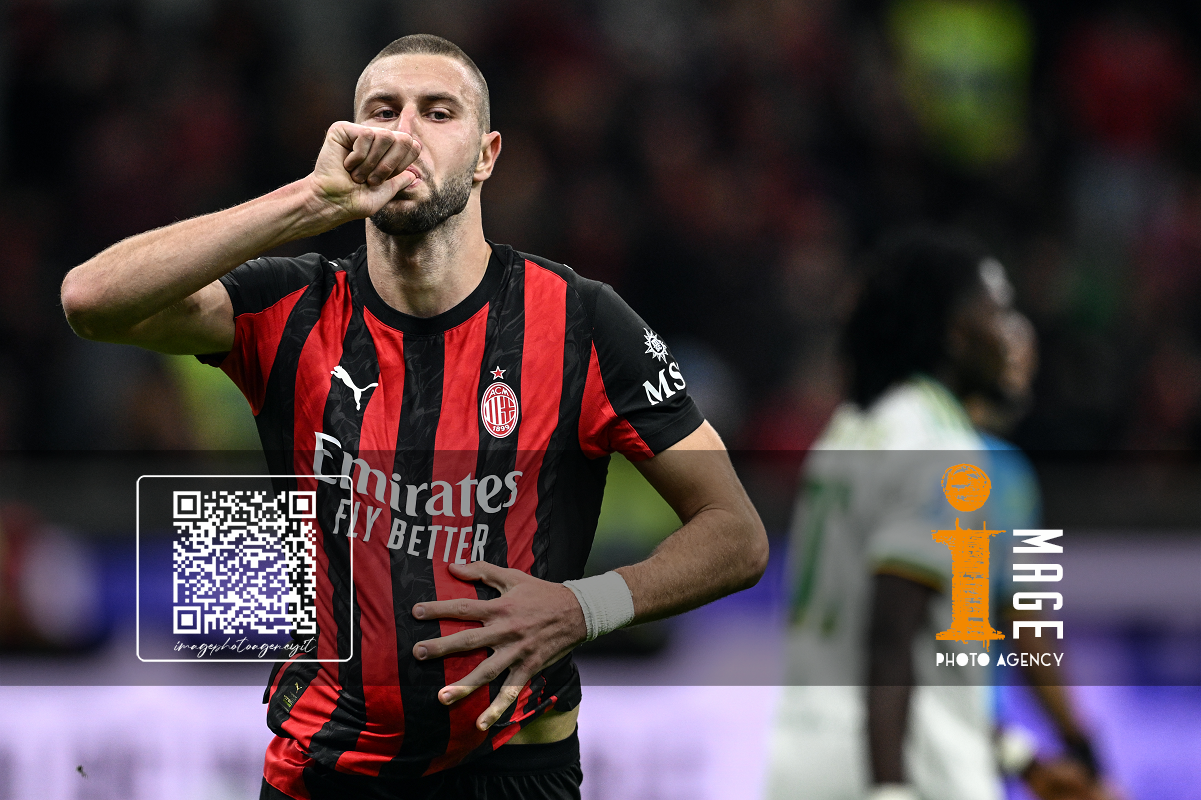 Mg Milano 02/11/2025 - campionato di calcio serie A / Milan-Roma / foto Matteo Gribaudi/Image Sport nella foto: esultanza gol Strahinja Pavlovic