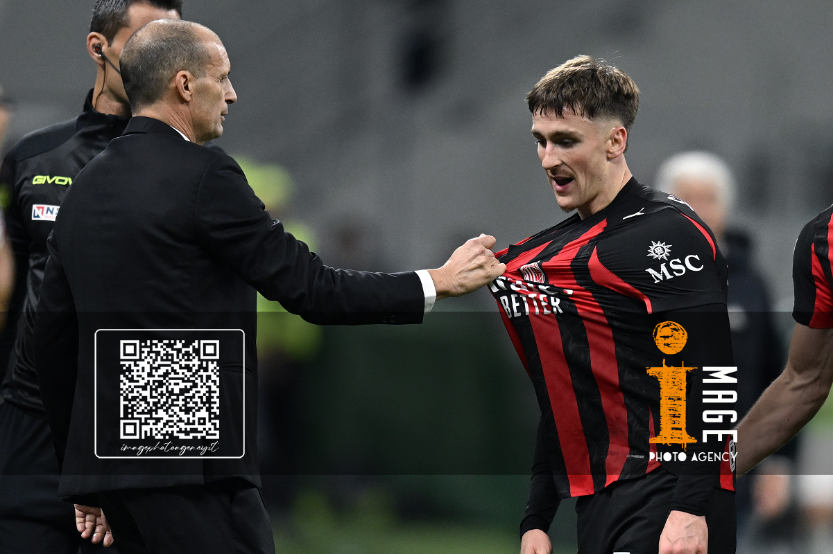 Db Milano 02/11/2025 - campionato di calcio serie A / Milan-Roma / foto Daniele Buffa/Image Sport nella foto: Massimiliano Allegri-Alexis Saelemaekers