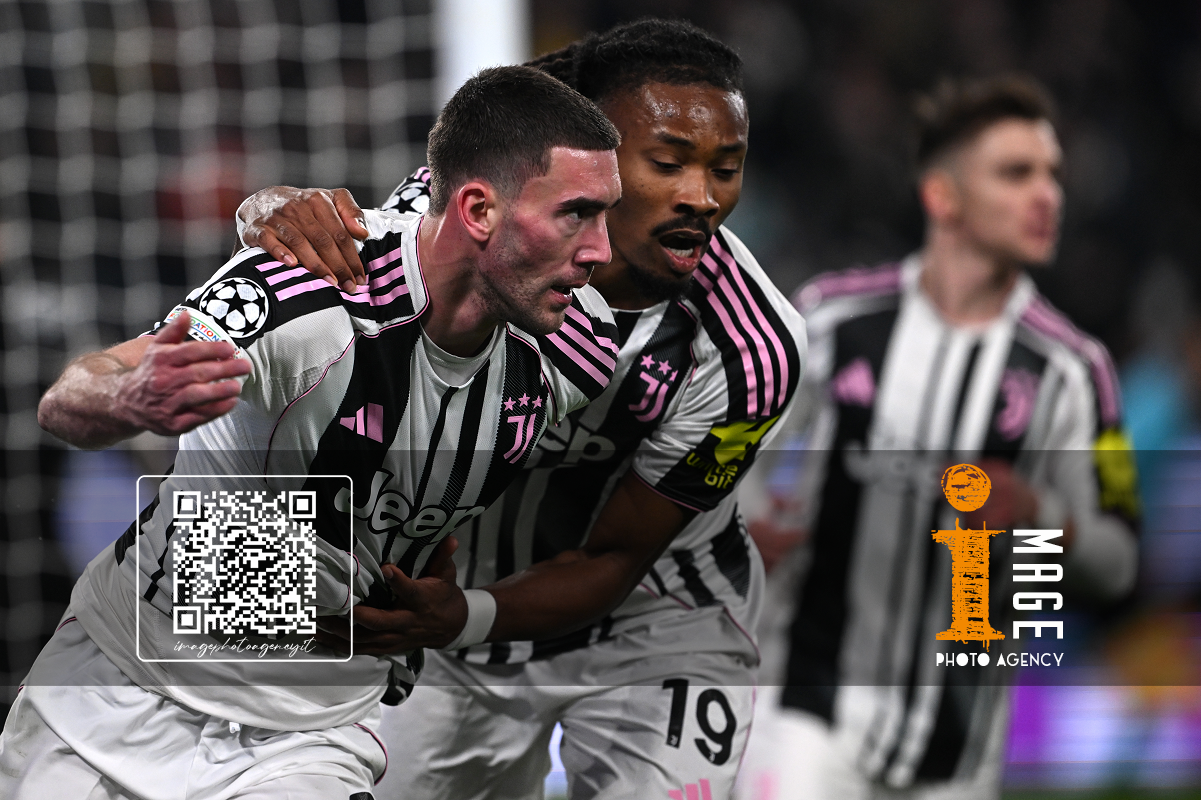 Cm Torino 04/11/2025 - Champions League / Juventus-Sporting Clube / foto Cristiano Mazzi/Image Sport nella foto: esultanza gol Dusan Vlahovic