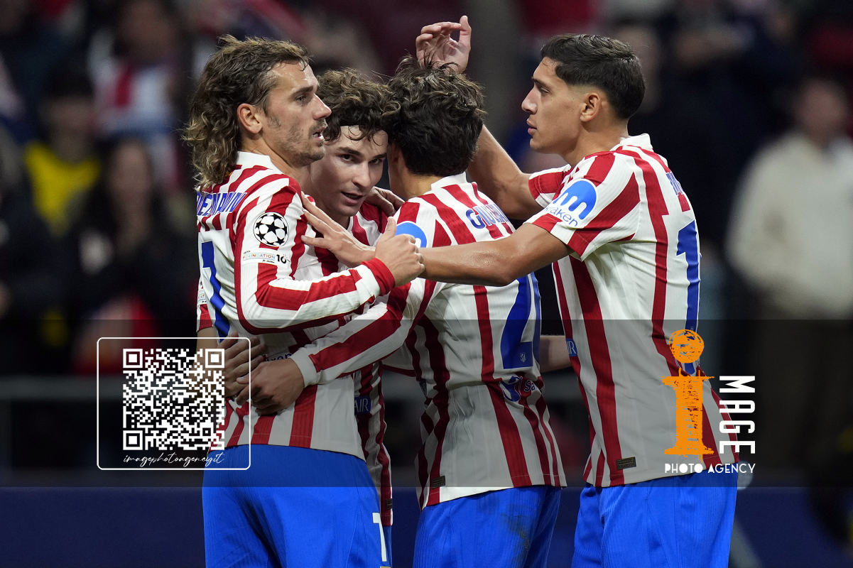 Pre Madrid 05/11/2025 - Champions League / Atletico Madrid-Union Saint Gilloise / foto Pressinphoto/Image Sport nella foto: esultanza gol Julian Alvarez