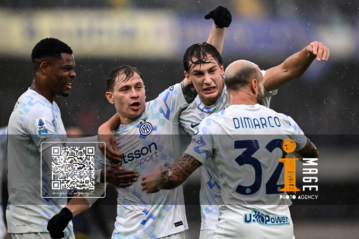 Mg Verona 02/11/2025 - campionato di calcio serie A / Hellas Verona-Inter / foto Matteo Gribaudi/Image Sport nella foto: Nicolo’ Barella-Pio Esposito-Federico Dimarco-Denzel Dumfries