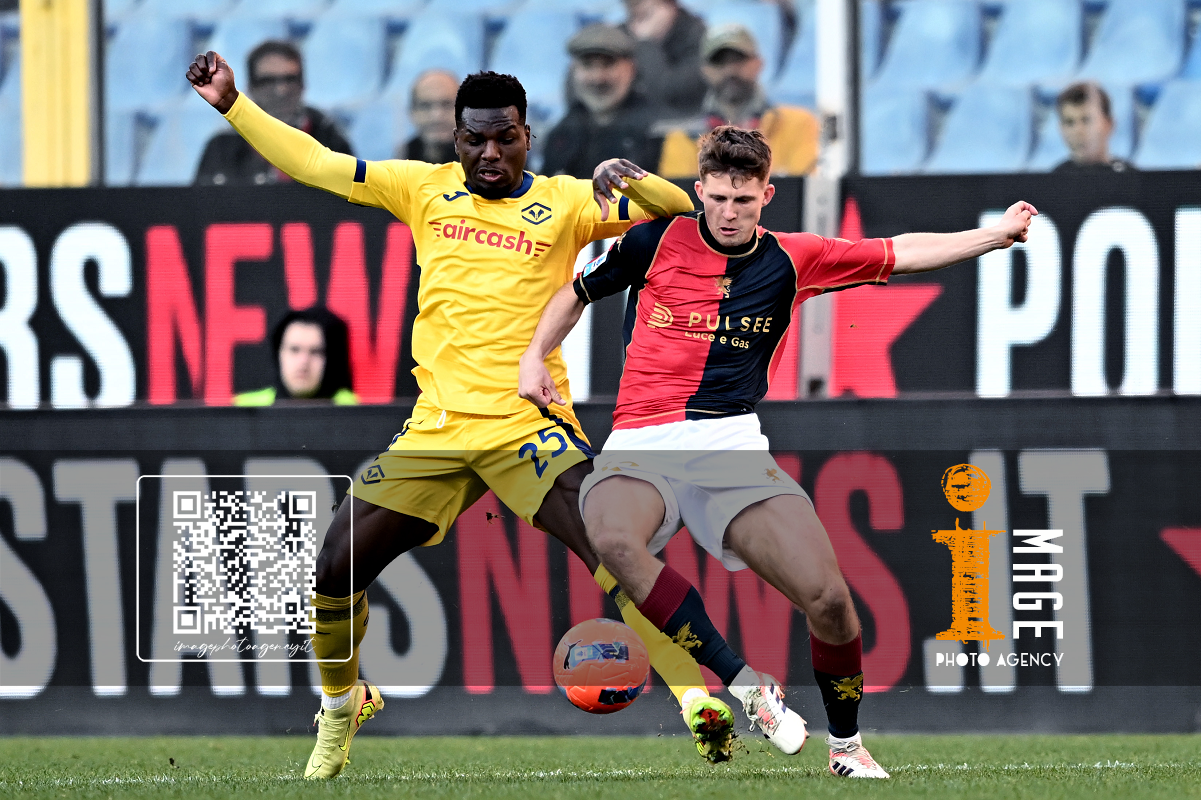 Mp Genova 29/11/2025 - campionato di calcio serie A / Genoa-Hellas Verona / foto Matteo Papini/Image Sport nella foto: Daniel Mosquera-Morten Fendrup