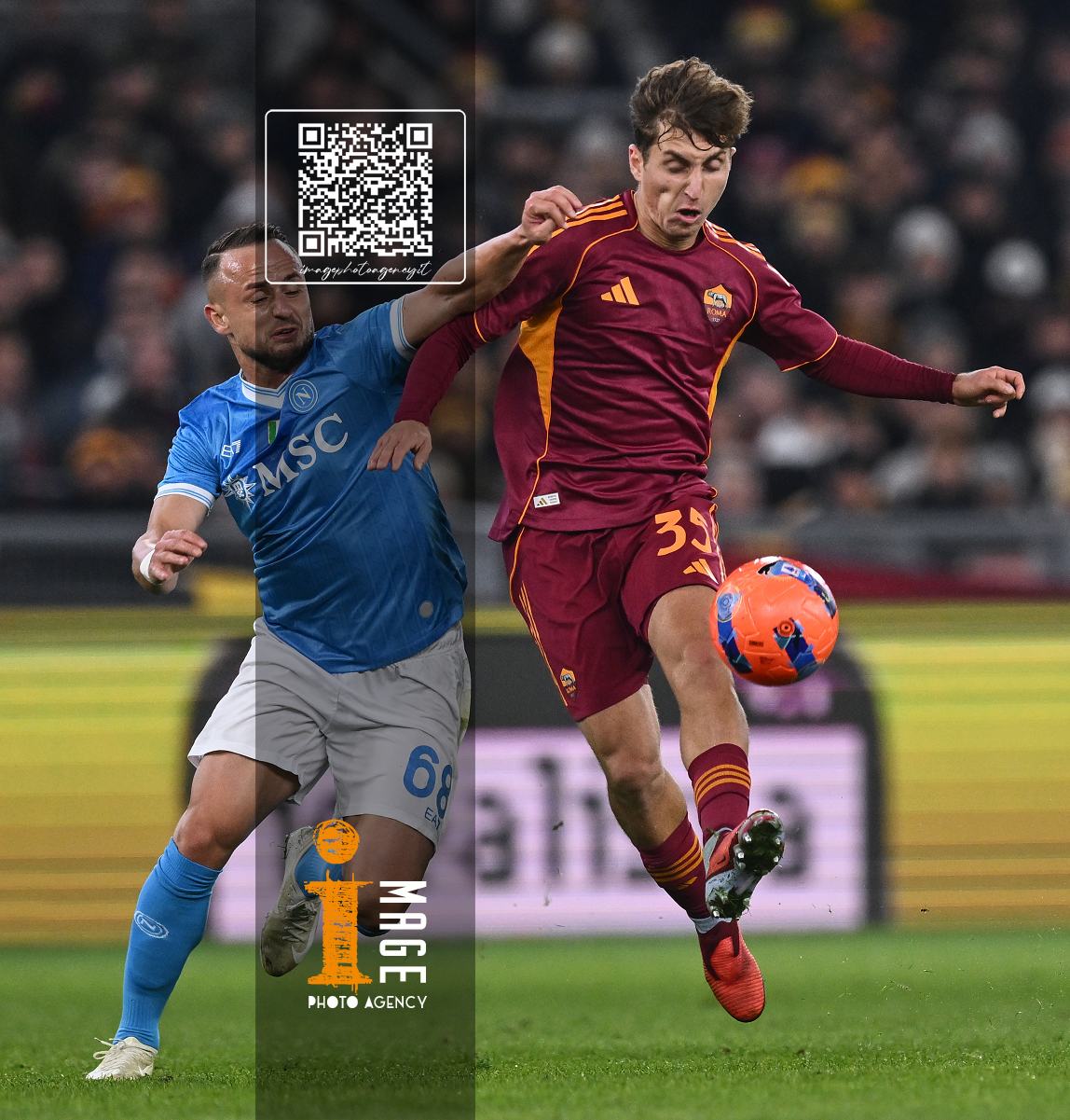 As Roma 30/11/2025 - campionato di calcio serie A / Roma-Napoli / foto Antonello Sammarco/Image Sport nella foto: Tommaso Baldanzi-Stanislav Lobotka