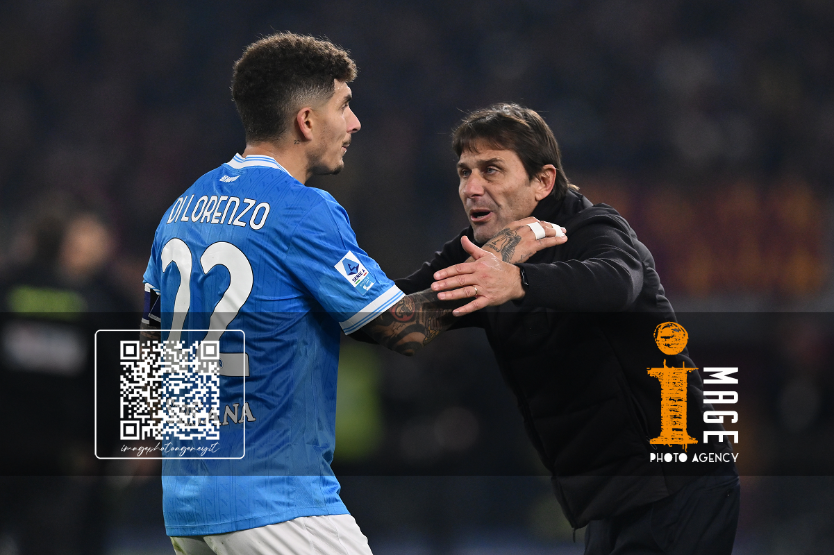As Roma 30/11/2025 - campionato di calcio serie A / Roma-Napoli / foto Antonello Sammarco/Image Sport nella foto: Antonio Conte-Giovanni Di Lorenzo