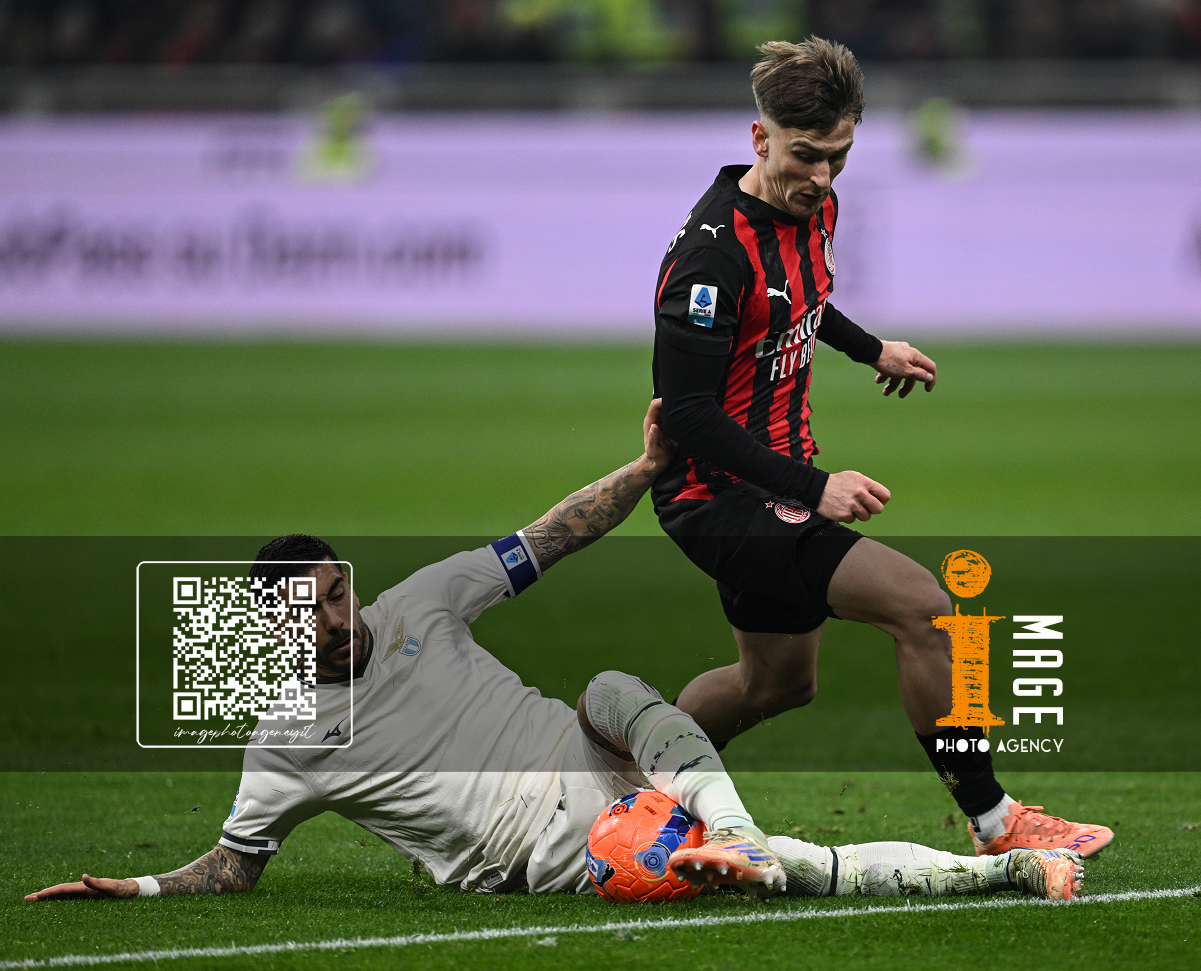 Mg Milano 29/11/2025 - campionato di calcio serie A / Milan-Lazio / foto Matteo Gribaudi/Image Sport nella foto: Alexis SaelemaekersMattia Zaccagni