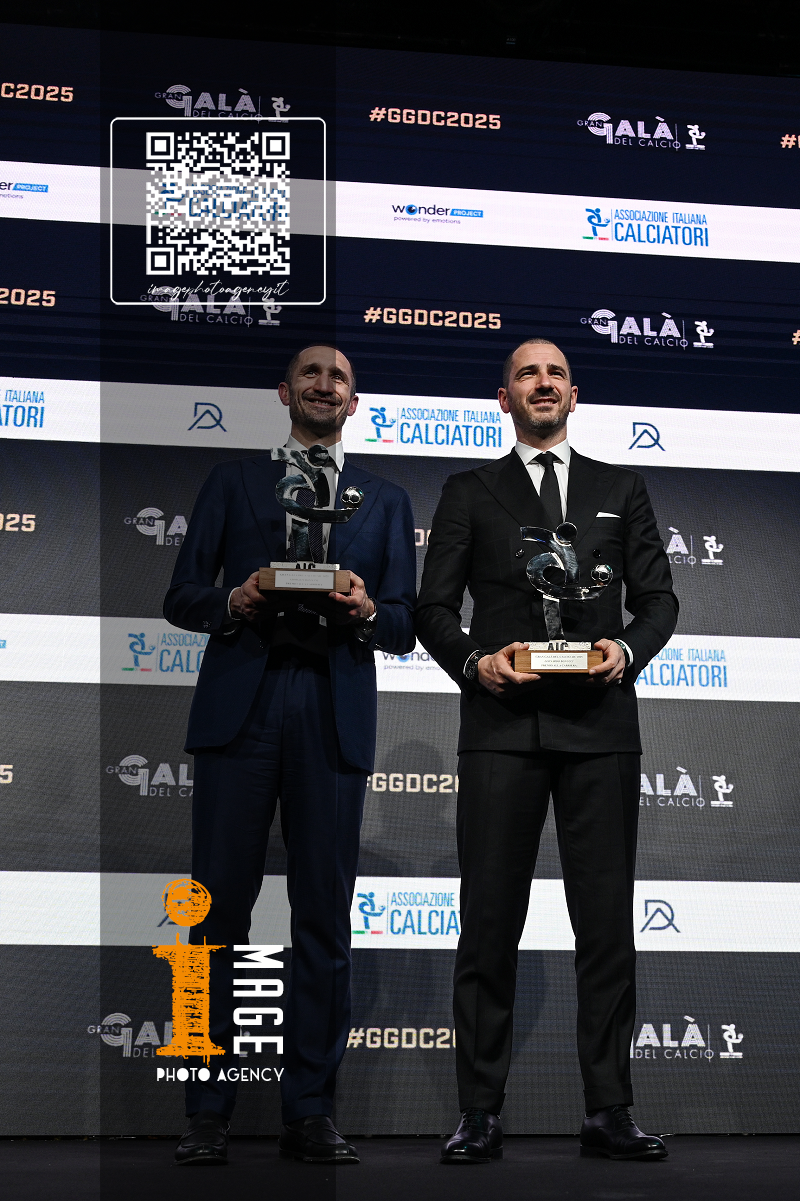 Mg Milano 01/12/2025 - Gran Gala' del Calcio Aic 2025 / foto Matteo Gribaudi/Image Sport nella foto: Giorgio Chiellini-Leonardo Bonucci
