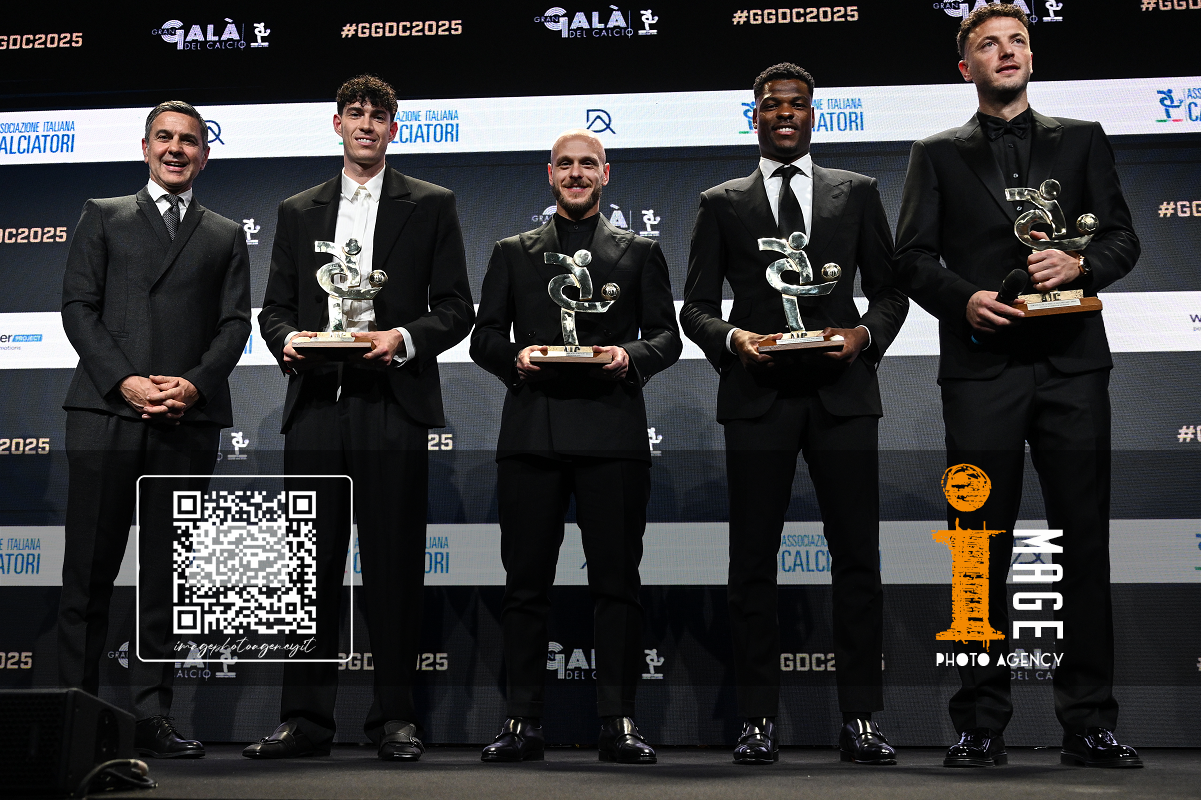Mg Milano 01/12/2025 - Gran Gala' del Calcio Aic 2025 / foto Matteo Gribaudi/Image Sport nella foto: Alessandro Costacurta-Pio Esposito-Federico Dimarco-Denzel Dumfries-Amir Rrahmani