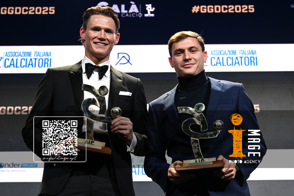 Mg Milano 01/12/2025 - Gran Gala' del Calcio Aic 2025 / foto Matteo Gribaudi/Image Sport nella foto: Scott McTominay-Nicolo’ Barella