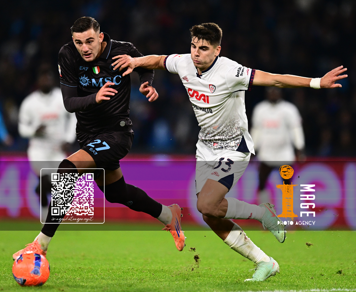 Ni Napoli 03/12/2025 - Coppa Italia / Napoli-Cagliari / foto Nicola Ianuale/Image Sport nella foto: Lorenzo Lucca-Adam Obert
