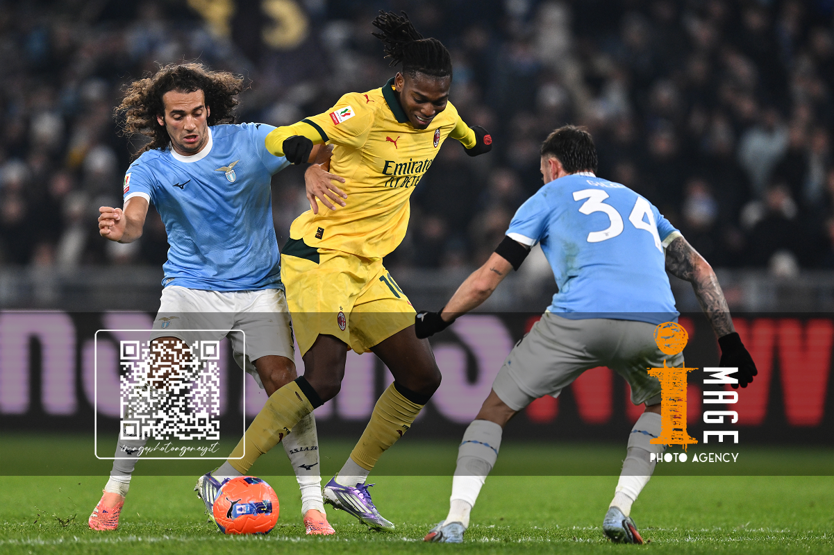 As Roma 04/12/2025 - Coppa Italia / Lazio-Milan / foto Antonello Sammarco/Image Sport nella foto: Rafael Leao-Matteo Guendouzi