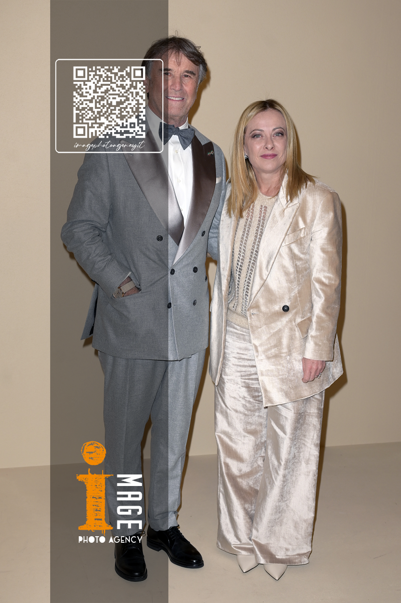 Mc Roma 05/12/2025 - premier film ‘Brunello il visionario garbato’ / foto Mario Cartelli/Image nella foto: Brunello Cucinelli-Giorgia Meloni