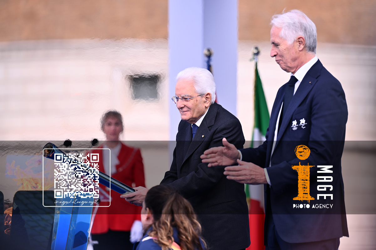 Dc Roma 05/12/2025 - Cerimonia di inaugurazione del viaggio della Fiamma Olimpica / foto Domenico Cippitelli/Image Sport nella foto: Sergio Mattarella-Giovanni Malago’