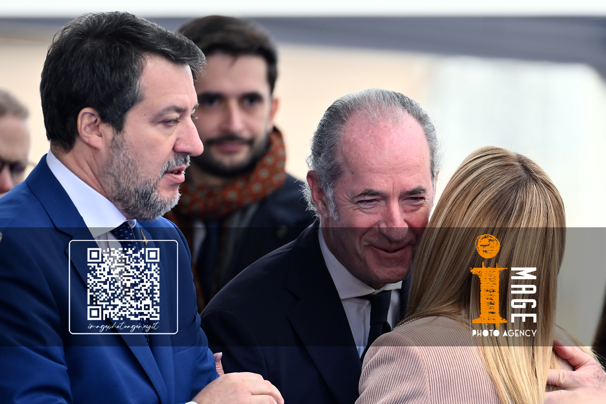 Dc Roma 05/12/2025 - Cerimonia di inaugurazione del viaggio della Fiamma Olimpica / foto Domenico Cippitelli/Image Sport nella foto: Giorgia Meloni-Matteo Salvini-Luca Zaia