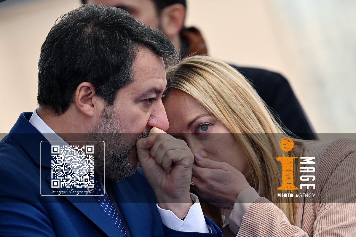 Dc Roma 05/12/2025 - Cerimonia di inaugurazione del viaggio della Fiamma Olimpica / foto Domenico Cippitelli/Image Sport nella foto: Giorgia Meloni-Matteo Salvini