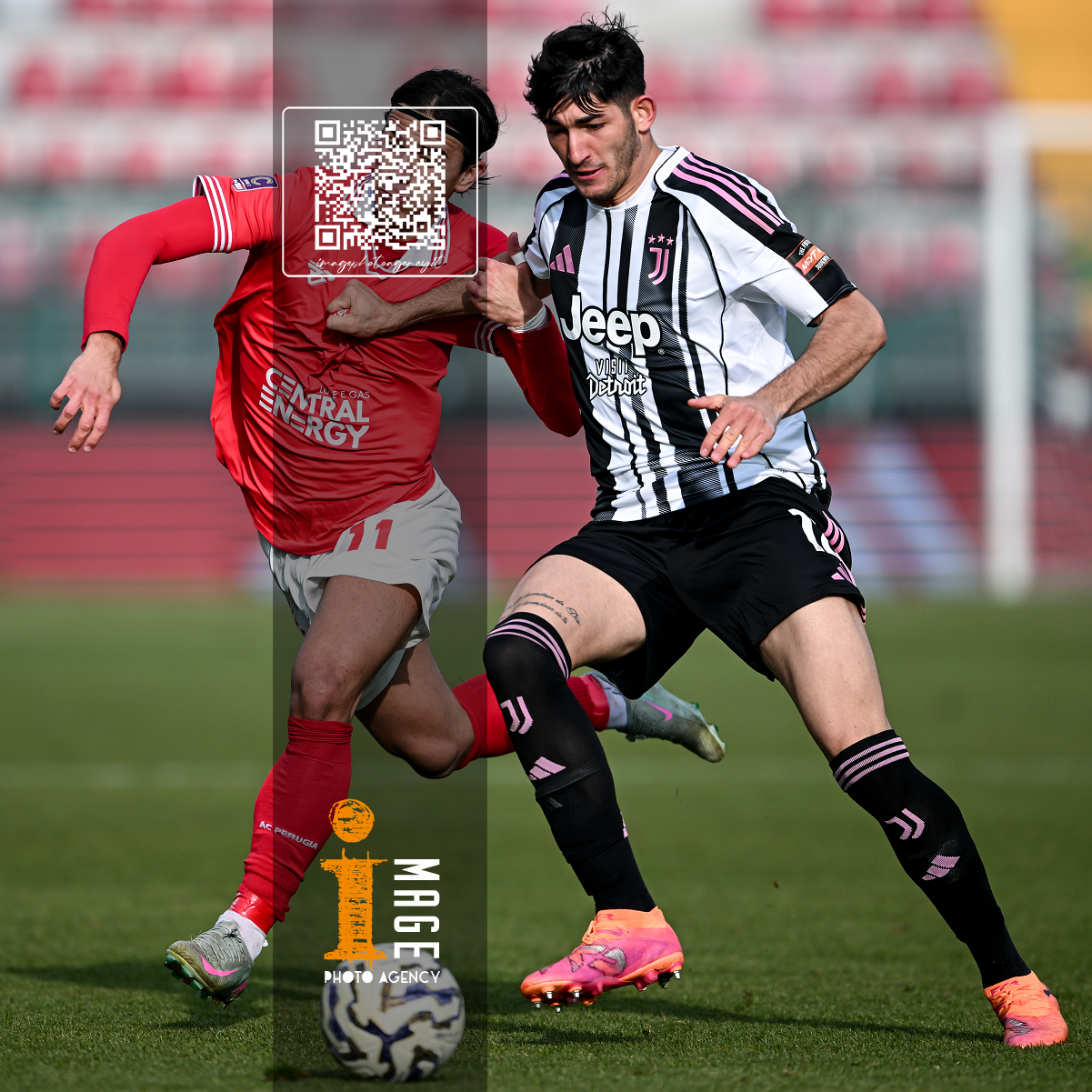 Cm Alessandria 30/11/2025 - campionato di calcio serie C / Juventus Next Gen-Perugia / foto Cristiano Mazzi/Image Sport nella foto: Luca Bacchin-Mattia Brugarello