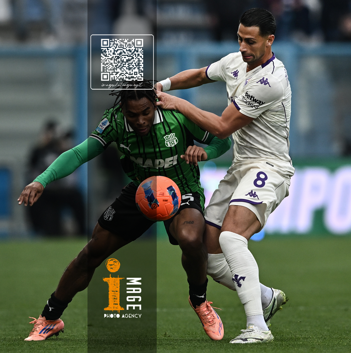 Mp Reggio Emilia 06/12/2025 - campionato di calcio serie A / Sassuolo-Fiorentina / foto Matteo Papini/Image Sport nella foto: Armand Lauriente'-Rolando Mandragora