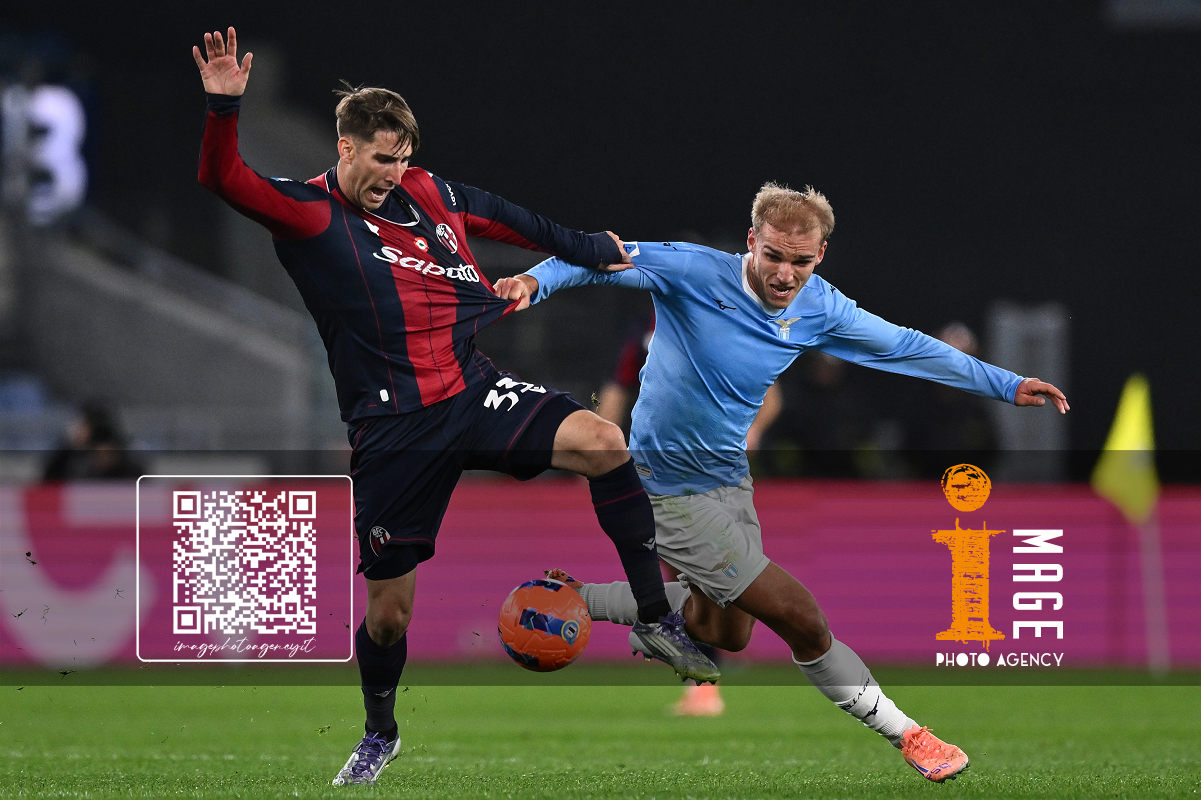 As Roma 07/12/2025 - campionato di calcio serie A / Lazio-Bologna / foto Antonello Sammarco/Image Sport nella foto: Gustav Isaksen-Juan Miranda