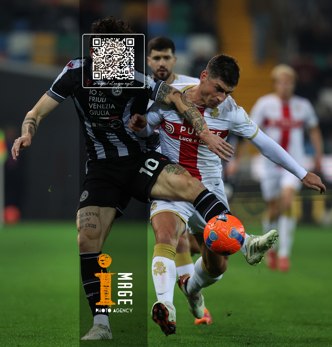 Ar Udine 08/12/2025 - campionato di calcio serie A / Udinese-Genoa / foto Andrea Rigano/Image Sport nella foto: Nicolo’ Zaniolo-Ruslan Malinovskyi