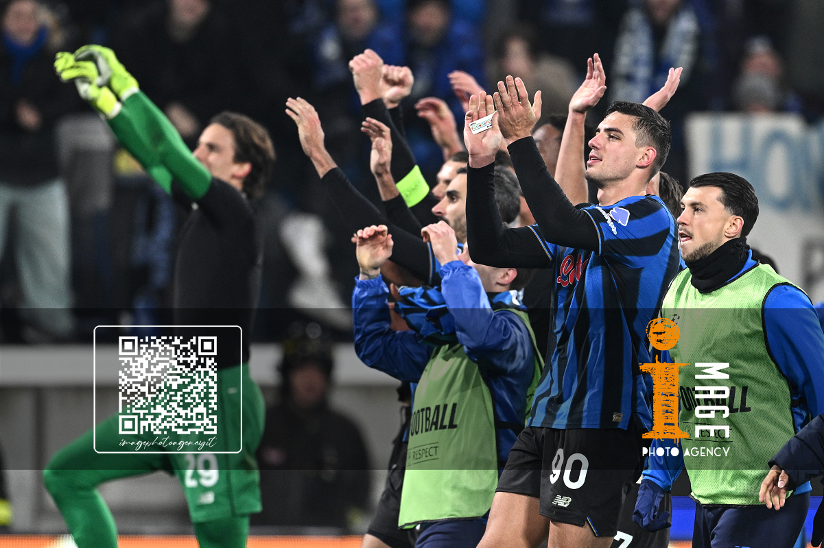 Mg Bergamo 09/12/2025 - Champions League / Atalanta-Chelsea / foto Matteo Gribaudi/Image Sport nella foto: esultanza a fine gara Atalanta