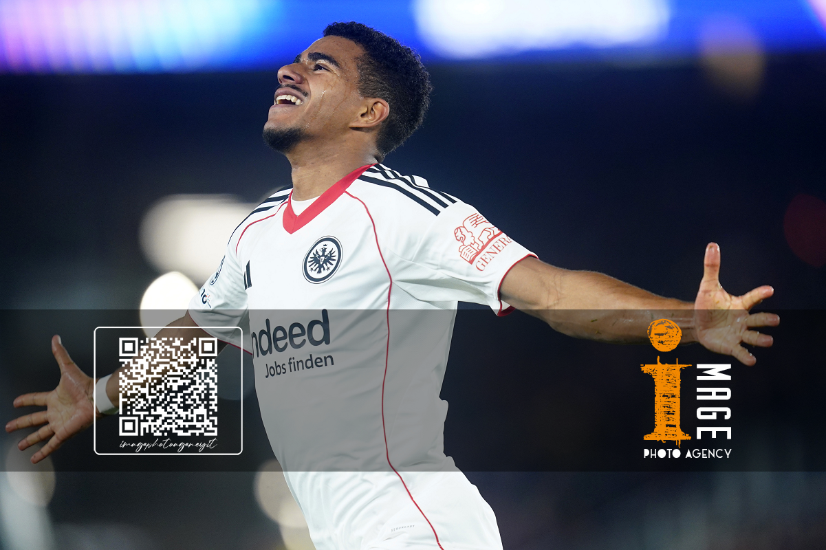 Pre Barcellona 09/12/2025 - Champions League / Barcellona-Eintracht Francoforte / foto Pressinphoto/Image Sport nella foto: esultanza gol Ansgar Knauff