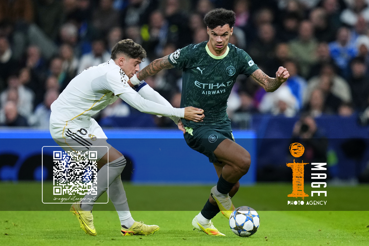 Pre Madrid 10/12/2025 - Champions League / Real Madrid-Manchester City / foto Pressinphoto/Image Sport nella foto: Nico O’Reilly-Federico Valverde