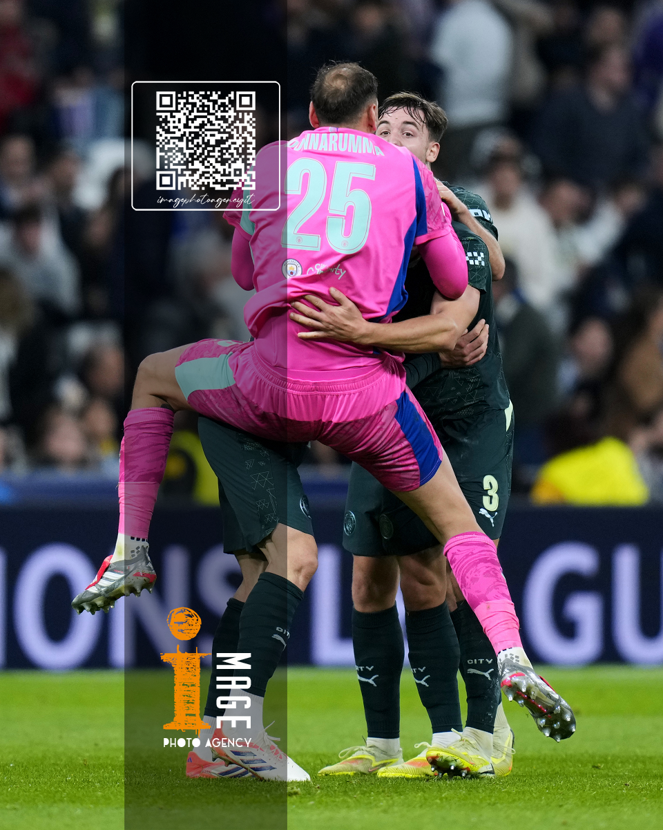 Pre Madrid 10/12/2025 - Champions League / Real Madrid-Manchester City / foto Pressinphoto/Image Sport nella foto: esultanza a fine gara Manchester City