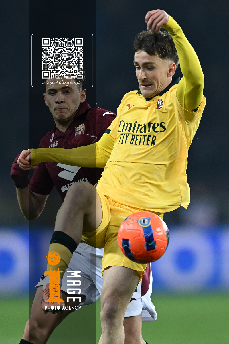 Db Torino 08/12/2025 - campionato di calcio serie A / Torino-Milan / foto Daniele Buffa/Image Sport nella foto: Alexis Saelemaekers-Kristjan Asllani