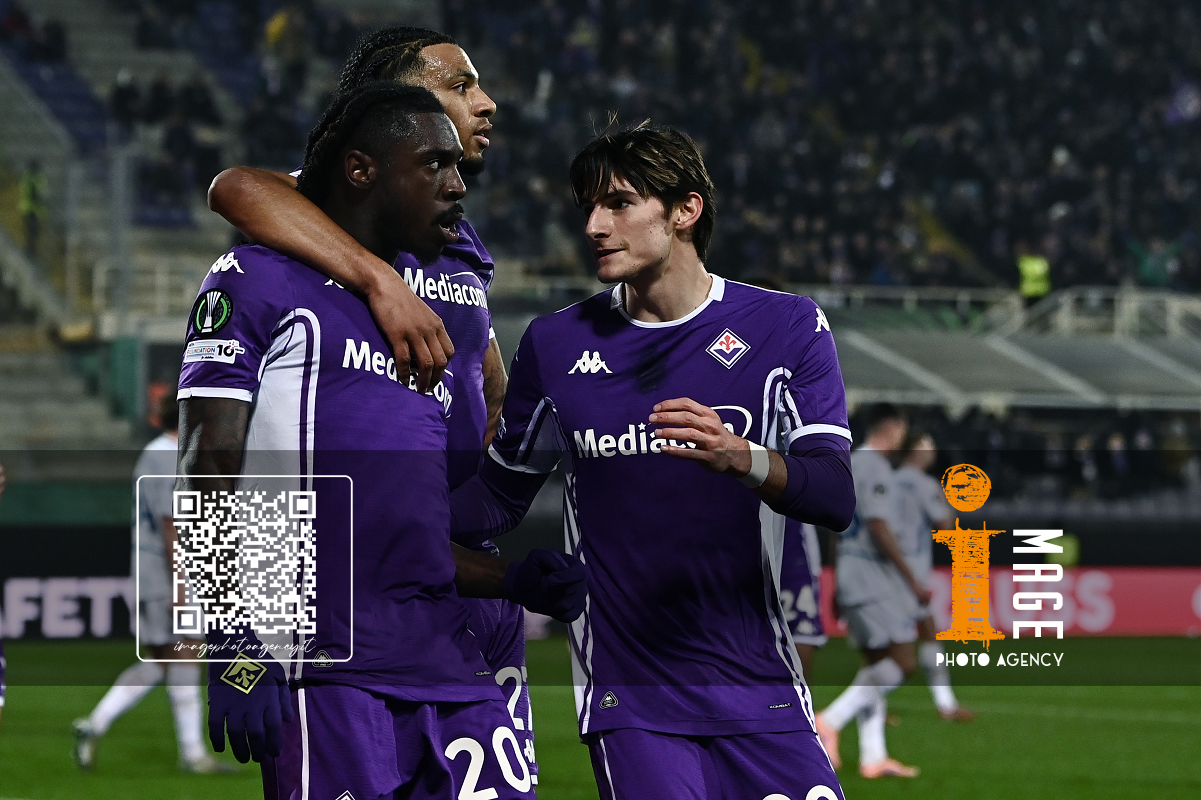 Mp Firenze 11/12/2025 - Conference League / Fiorentina-Dinamo Kiev / foto Matteo Papini/Image Sport nella foto: esultanza gol Moise Kean