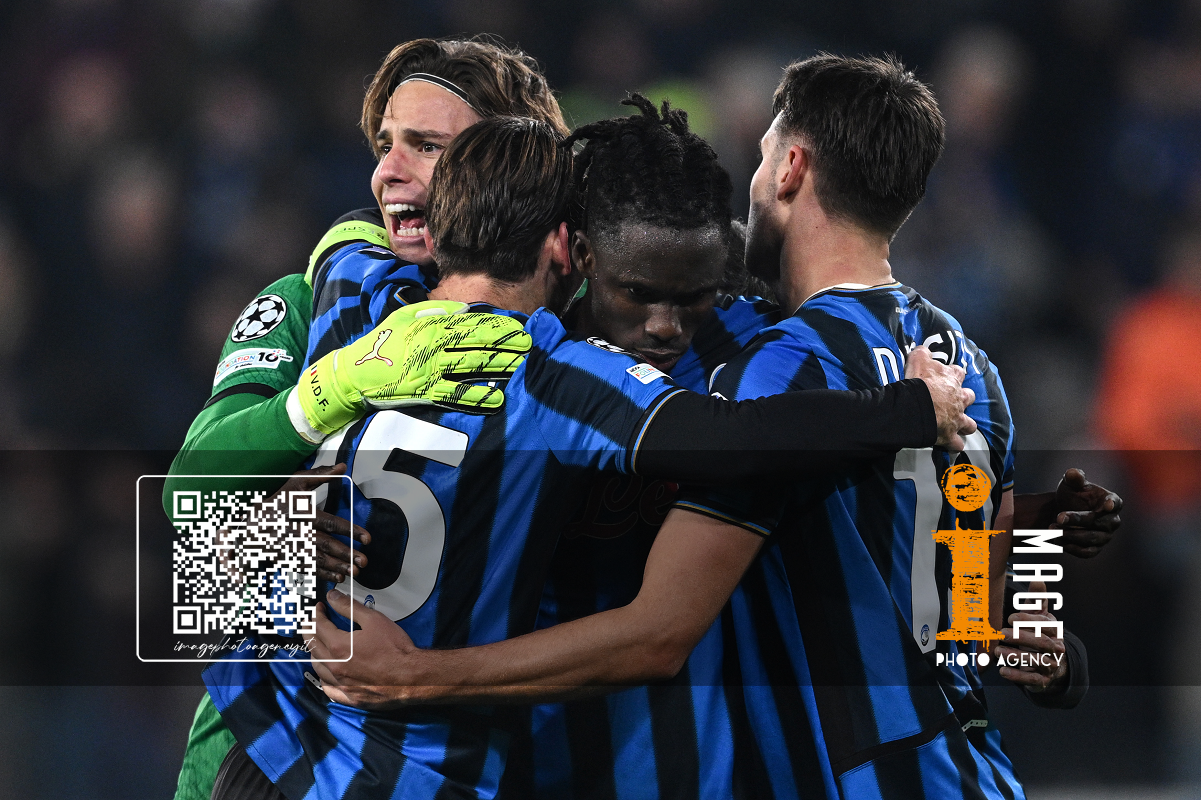 Mg Bergamo 09/12/2025 - Champions League / Atalanta-Chelsea / foto Matteo Gribaudi/Image Sport nella foto: esultanza a fine gara Atalanta