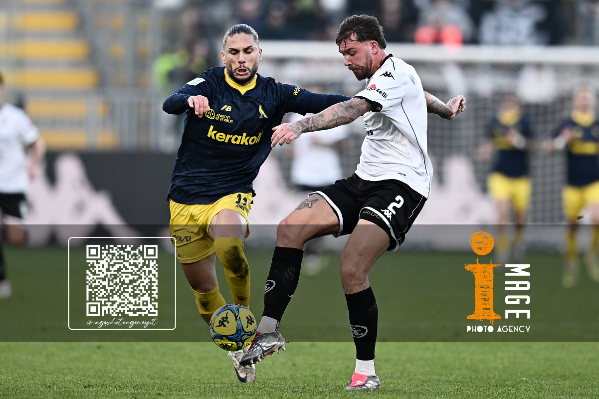 Mp La Spezia 13/12/2025 - campionato di calcio Serie B / Spezia-Modena / foto Matteo Papini/Image Sport nella foto: Przemyslaw Wisniewski-Pedro Lobo Peixoto Miniero Mendes