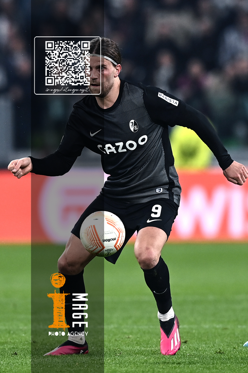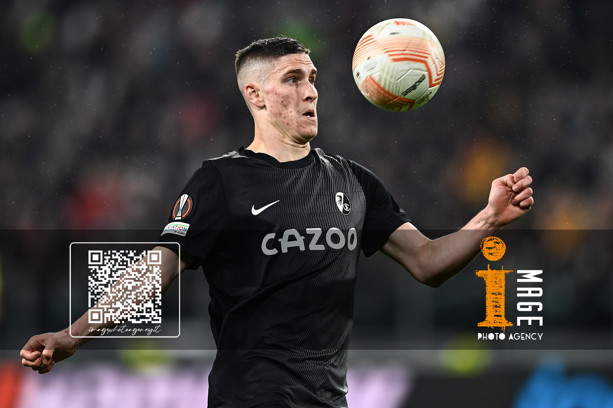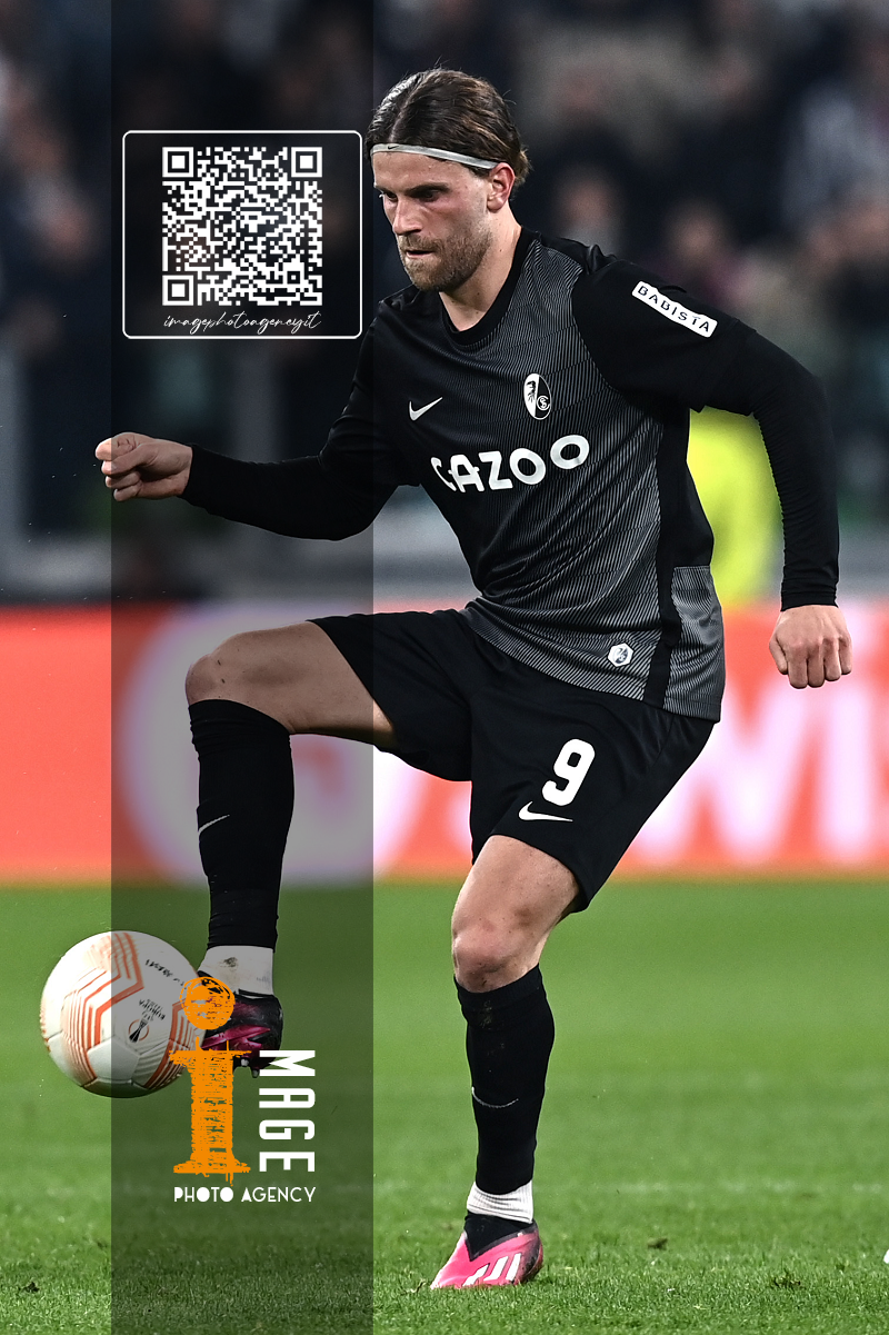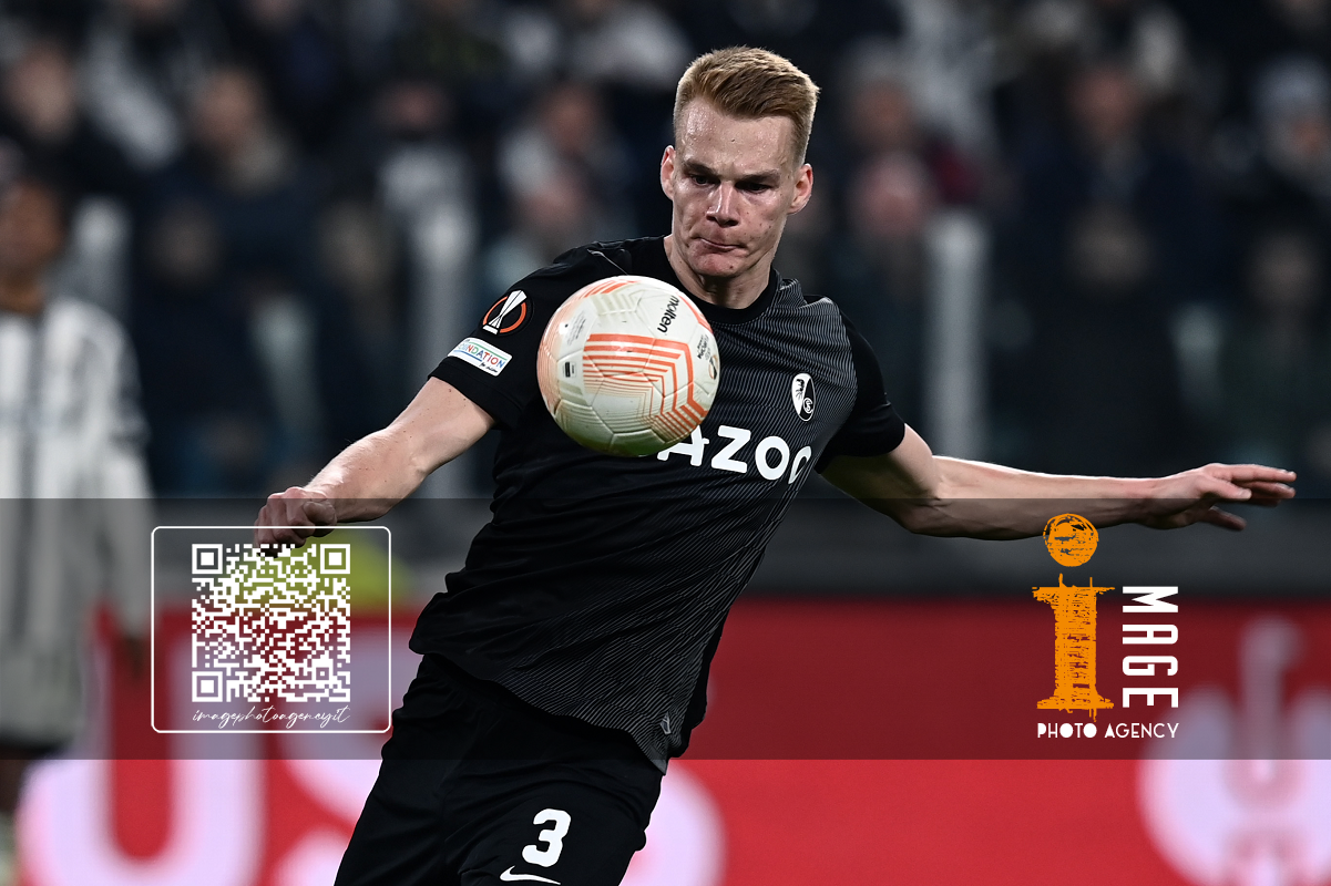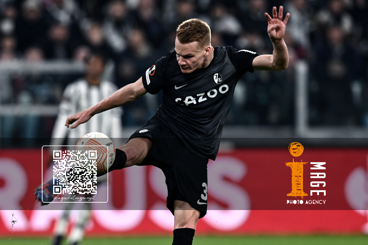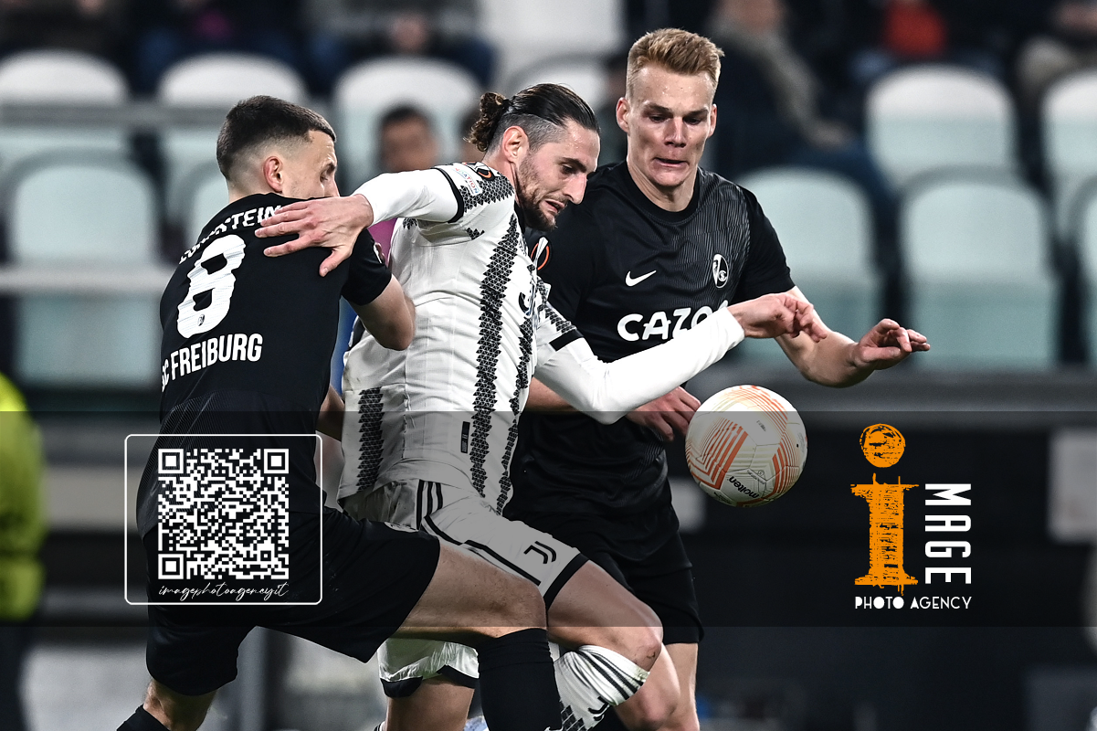 Db Torino 09/03/2023 - Europa League / Juventus-Friburgo / foto Daniele Buffa/Image Sport nella foto: Maximilian Eggestein-Philipp Lienhart-Adrien Rabiot