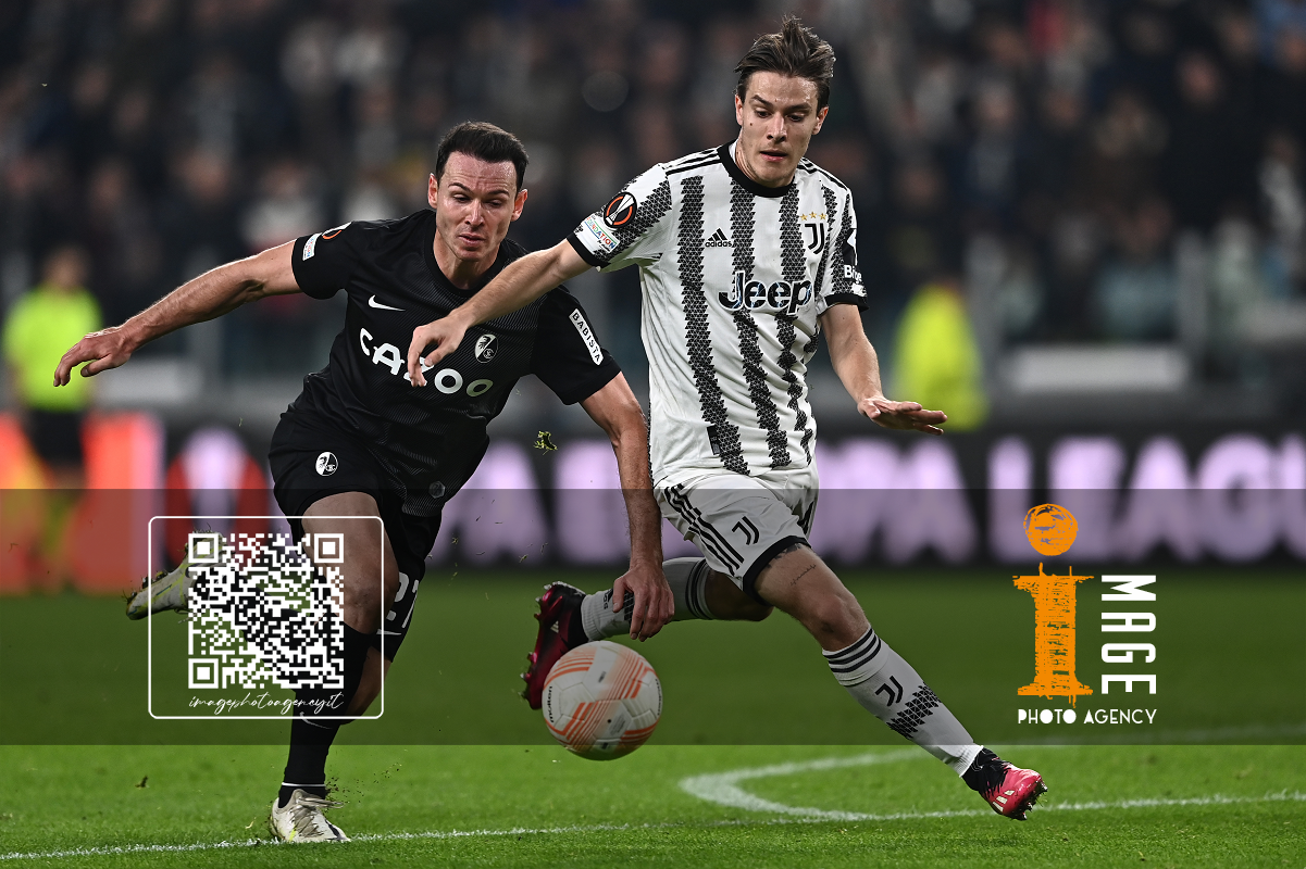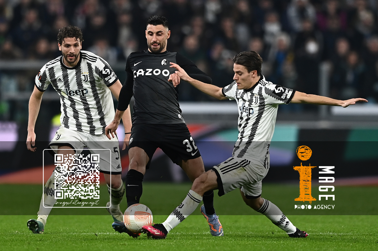 Mg Torino 09/03/2023 - Europa League / Juventus-Friburgo / foto Matteo Gribaudi/Image Sport nella foto: Vincenzo Grifo-Nicolo’ Fagioli-Manuel Locatelli